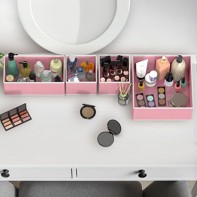 SIMPLE HOUSEWARE Foldable Drawer Organizer for Clothes/Underwear/Panty/Onesie Stocking Bin, Set of 12, Pink