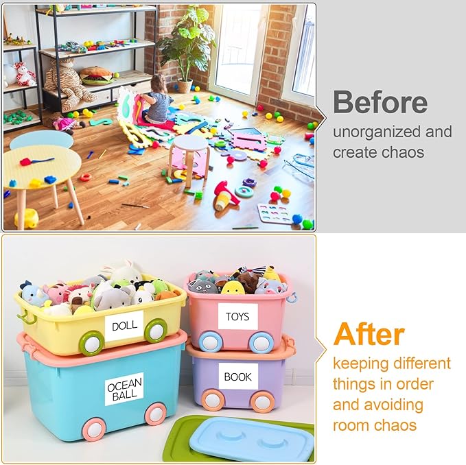- Multipurpose Organization: Our Removable Labels for Storage Bins are perfect for home, school, and enterprise use on storage containers with flat, smooth surfaces. Storage Bin Labels Effortlessly organize kitchen utensils, office supplies, clothing, holiday decorations, toys, or tools. Make your items easy to sort and identify.