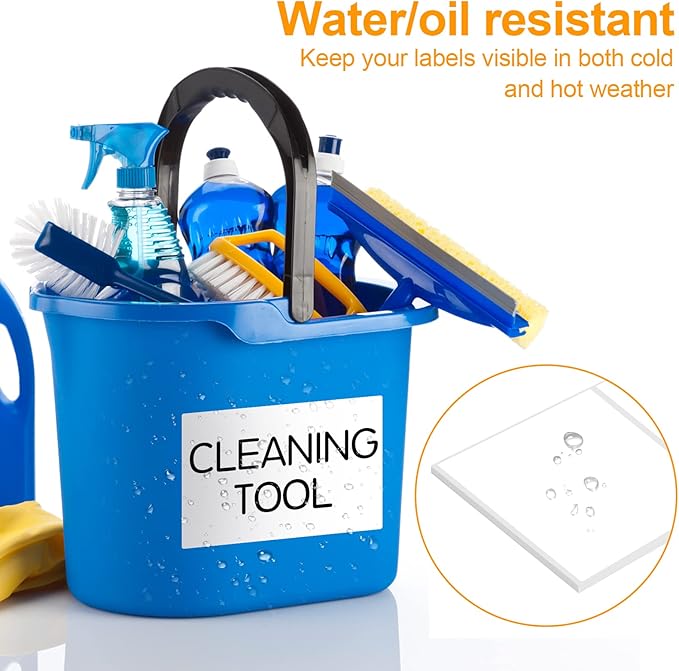 - Quality: Our Large Labels For Storage Bins are made from synthetic paper and high-quality adhesive, offering durability and water/Oil/Tear Resistants with No Residue. Use our storage labels without worrying about losing them in your storage bins, containers, or buckets.