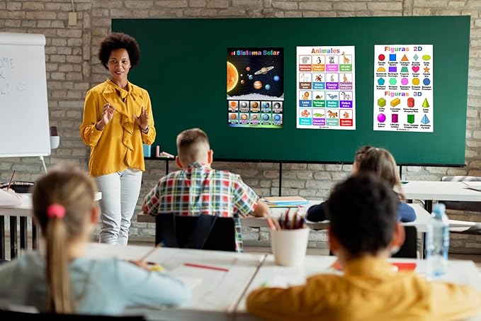 12 Spanish English Bilingual Educational Posters Water Proof Learning Chart for Preschool, Kindergarten, 1st Grade, Classroom Decoration, Alpabet, Alfabeto, Numbers, Seasons, Colors, Month of the