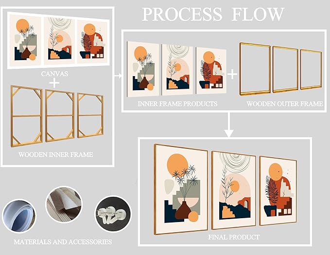 ZHAOSHOP Boho Wall-Art for Living Room - 3 Piece Wall Art Framed Minimalist Wall Art Bedroom Ready to Hang Size 24" x 36"