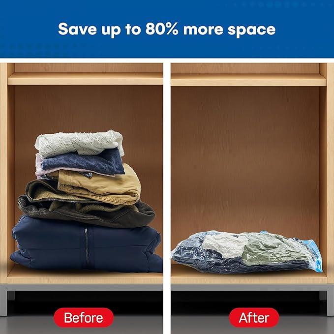 - Save Up to 80% Space: These vacuum seal space saver bags are perfect for compressing comforters, large blankets, duvets, and clothing. Ideal for maximizing storage in your closet, luggage, or basement.