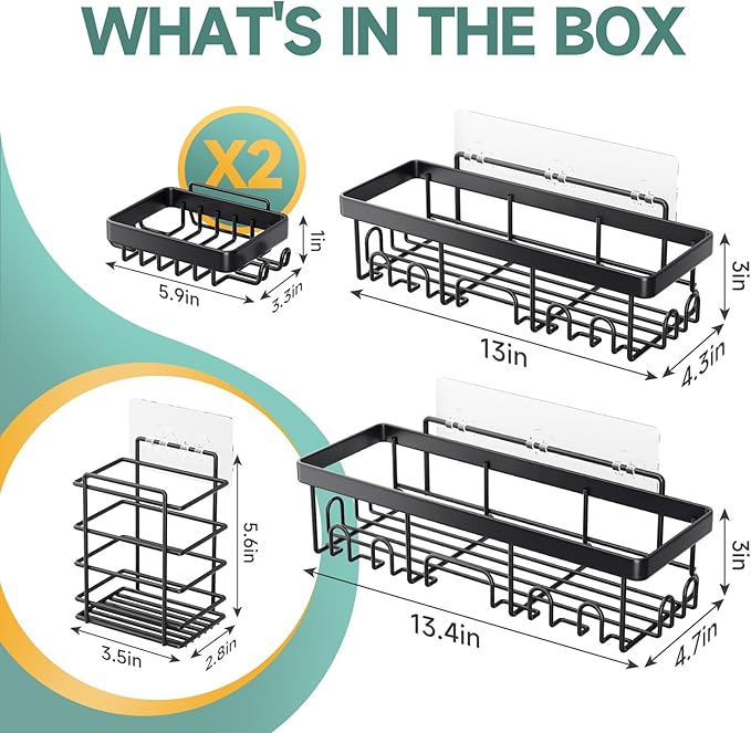 - Perfect for Family Bathrooms: Ideal for family use, this shower caddy set offers versatile storage options. Its space-saving design helps maximize bathroom storage, organizing everyone’s essentials while ensuring easy access for all family members.