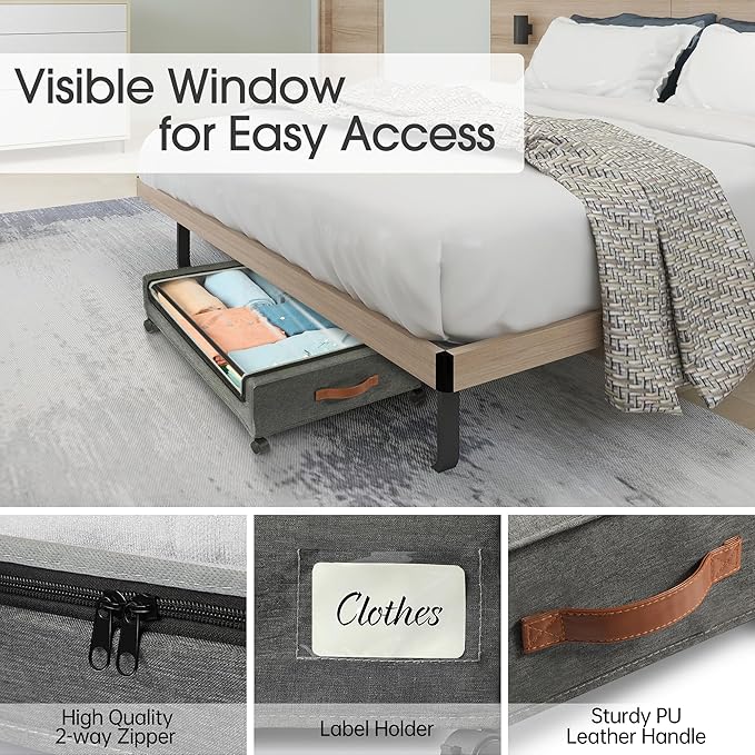 - Clear Window & Label: Our rolling underbed storage bins are equipped with a Clear window, you can clearly see the stored items, say goodbye to the trouble of misplacing items. Additionly, the included label is great for labeling contents, allowing you to quickly identify and find the item you're looking for without having to open multiple containers or boxes