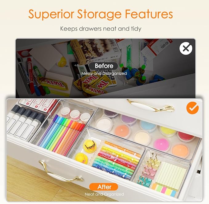 - Wide Range of Use Scenarios: Perfect for kitchen, bedrooms, bathroom. Whether it's stationery, cosmetics, kitchen junk, or snack, you can easily find the right space for everything
