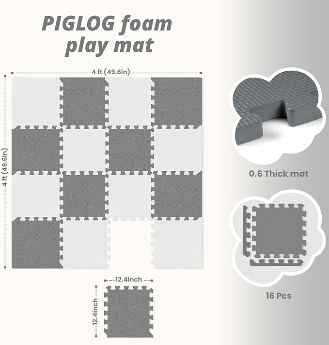 - 16 Square Feet: The baby floor play mat is assembled to be 47.2*47.2 inches, providing ample space for the baby to play.