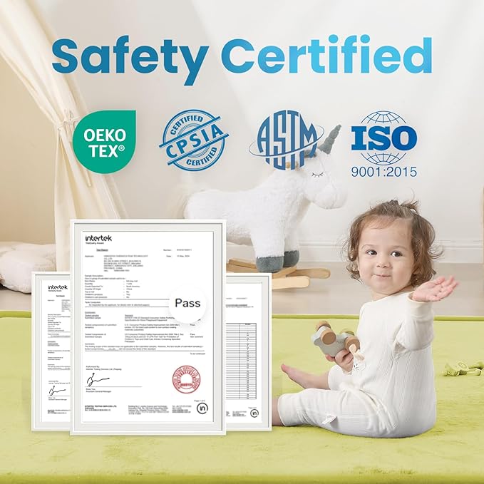 - Safety Certified & Fall-Proof Protection: Made with OEKO-TEX certified fabric and CERPITUR-US certified elasti-foam, this anti-fall mat meets ASTM/CPSIA safety standards, providing a soft barrier to prevent baby from rolling off beds or furniture. Perfect for bedside fall protection and safe sleep.