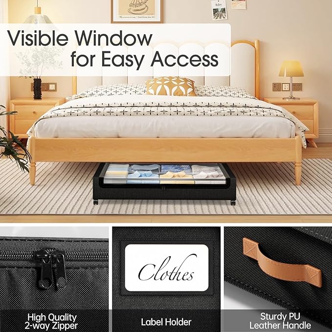 - Clear Window & Label: Our rolling underbed storage bins are equipped with a Clear window, you can clearly see the stored items, say goodbye to the trouble of misplacing items. Additionly, the included label is great for labeling contents, allowing you to quickly identify and find the item you're looking for without having to open multiple containers or boxes