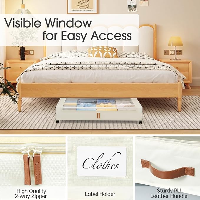 - Clear Window & Label: Our rolling underbed storage bins are equipped with a Clear window, you can clearly see the stored items, say goodbye to the trouble of misplacing items. Additionly, the included label is great for labeling contents, allowing you to quickly identify and find the item you're looking for without having to open multiple containers or boxes