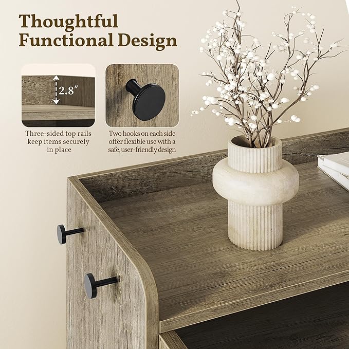 - Attentive Details: With a raised-edge anti-fall top and four hooks, this shoe organizer keeps bags, hats, umbrellas, and dog leashes within reach. Combining handy storage with refined texture, it brings both convenience and charm to any style-conscious home