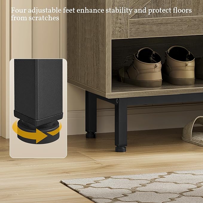 - Compact Structure: This compact shoe cabinet fits neatly in your entryway. Its vertical layout maximizes storage without crowding the room—ideal for apartments, small foyers, or narrow hallways where floor space is limited and clutter easily builds up