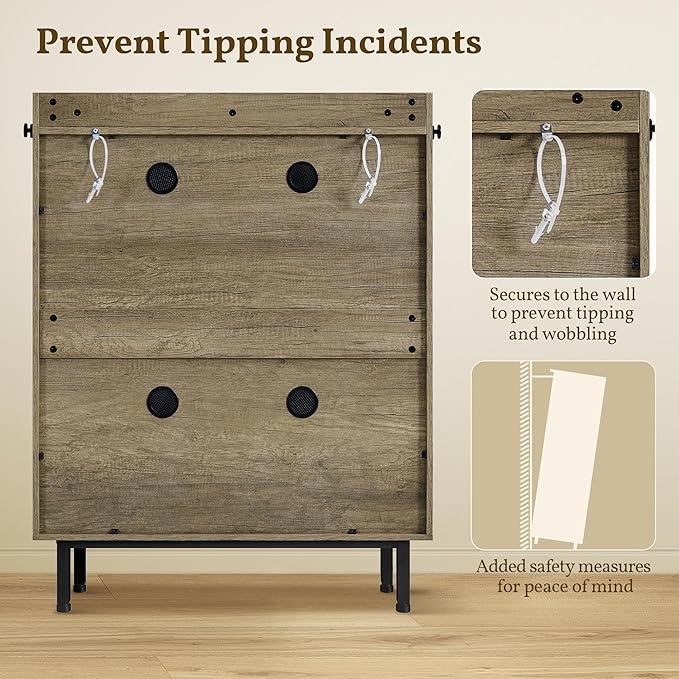 - Wall-Anchor Safety: Wall anchors firmly secure this multi-layer cabinet, minimizing tipping risks in busy homes with naughty family members. This safety feature provides reliable protection while preserving the cabinet’s sleek, country-style design and charm